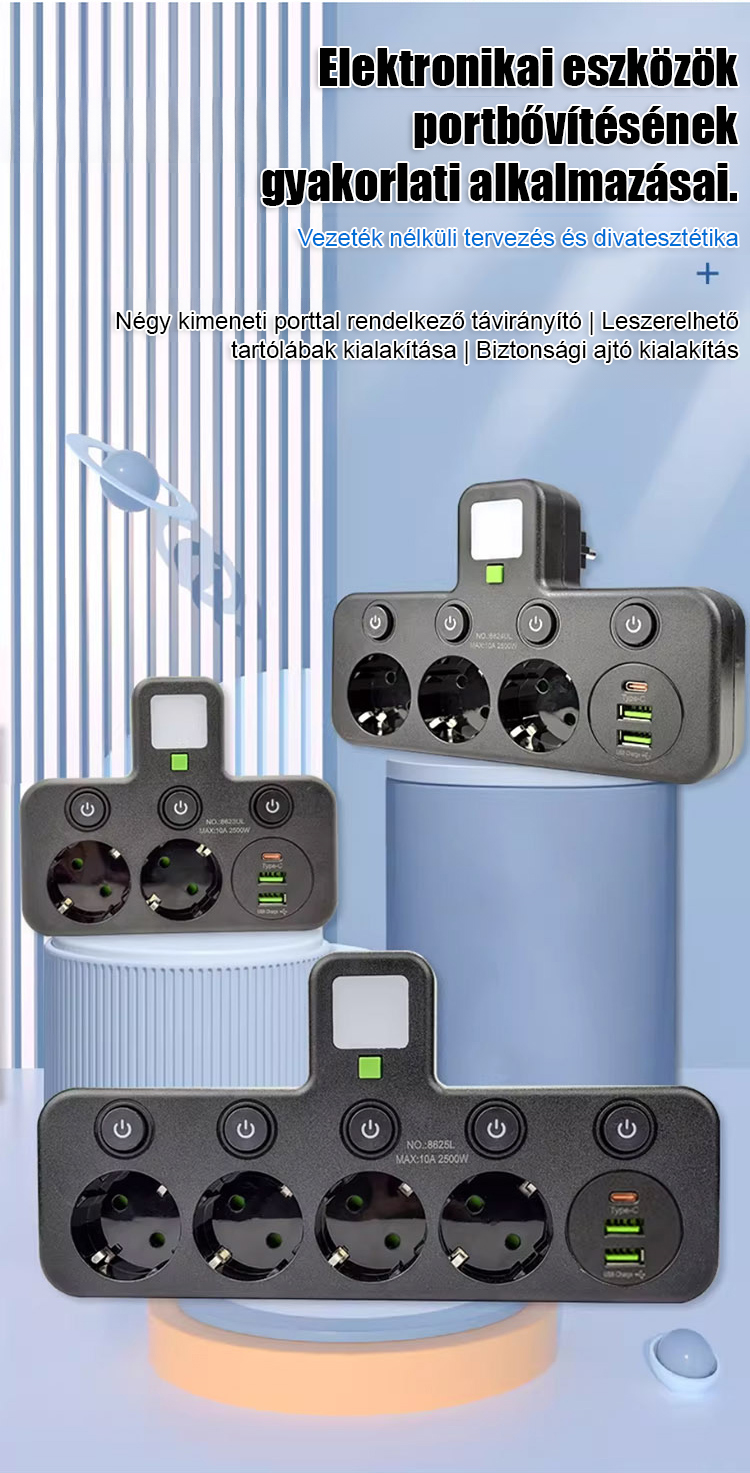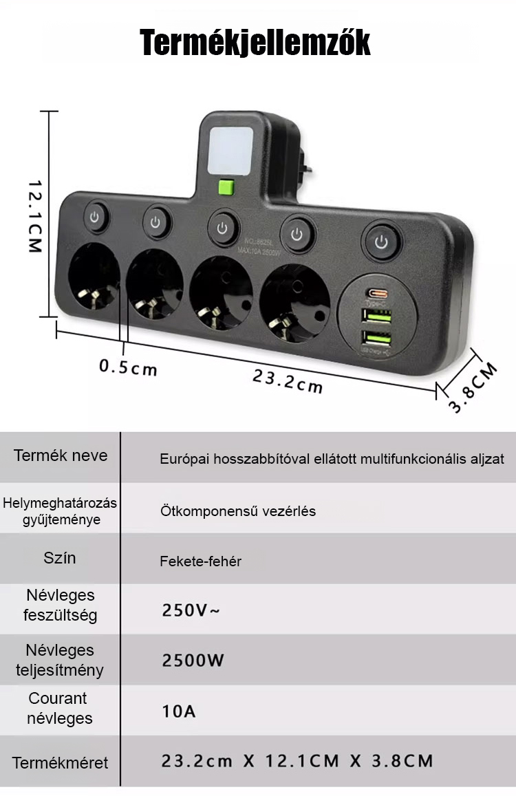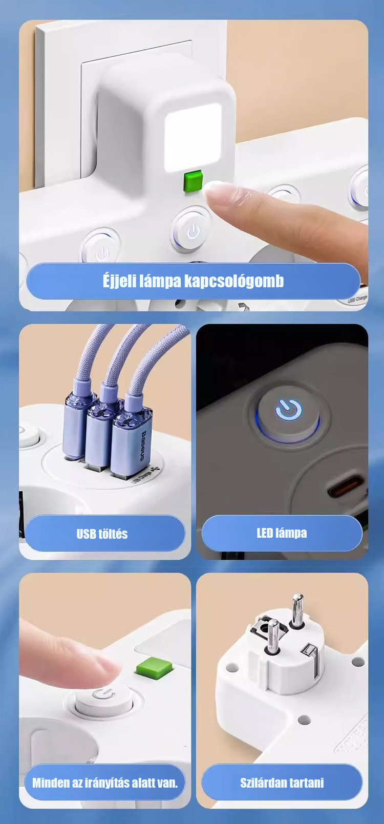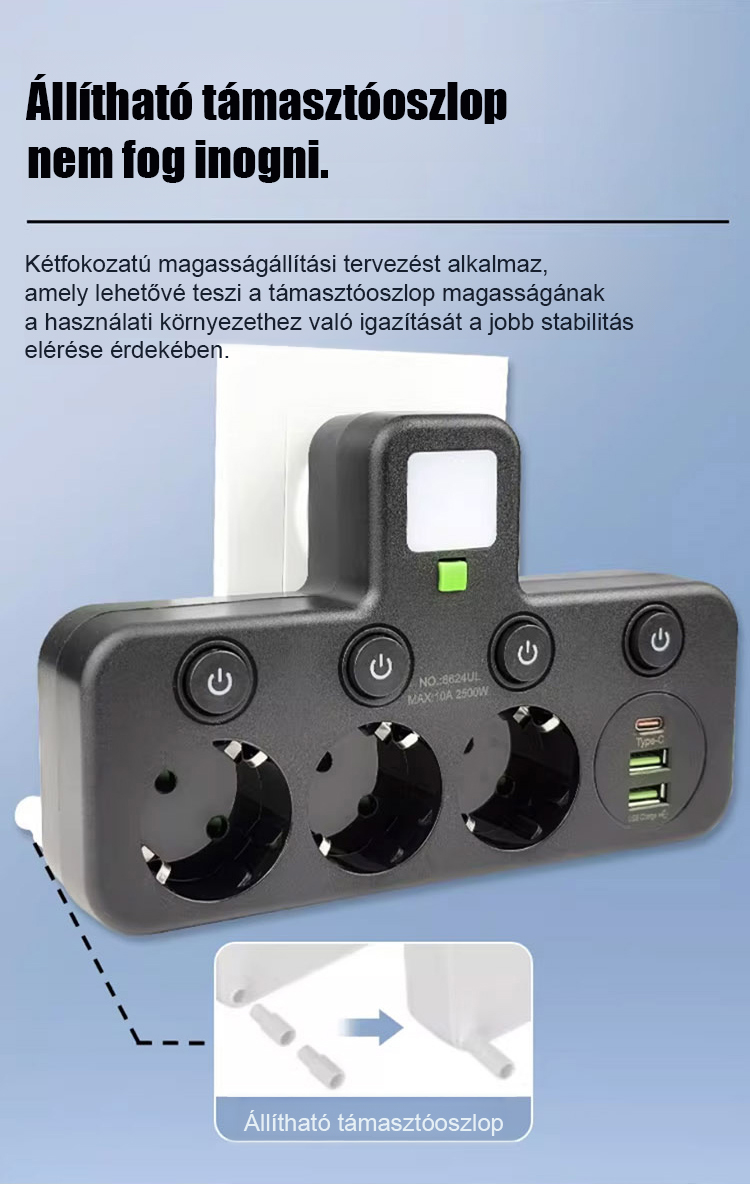 11 az 1-ben, európai szabványú hálózati elosztó — azonnal használható, nincs szükség fúrásra, búcsút inthet a káosznak.